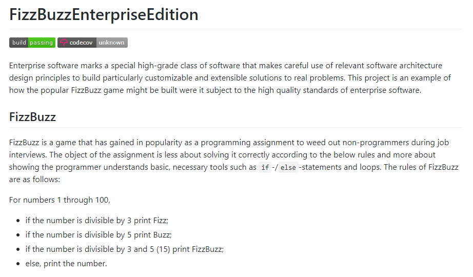Furthermore, the theory goes, is that you can filter such people out of your interview process by giving them a slightly atypical problem that is very easy and incorporates basic elements of coding. The problem is atypical in the sense that it’s not something you’d normally do and the solution doesn’t look like typical code in a typical codebase. This means they can’t rehash things they’ve seen on StackOverflow a zillion times; they need to actually use their brain, albeit minimally. FizzBuzz’s solution is inelegant, but straightforward. When faced with a slightly unfamiliar challenge, the bad coders will crumble. Meanwhile, since the problem is so simple and fair, the halfway decent coders get FizzBuzz right 100% of the time in a few minutes, even on a bad day with zero coffee.