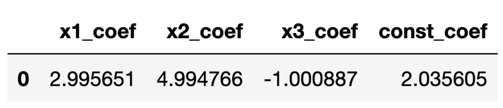 sum(y_centered * x1_centered) / sum(x1_centered * x1_centered) as x1_coef