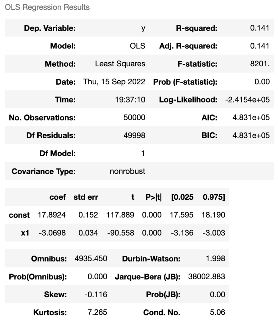 sm.OLS(endog=df["y"], exog=df[["const", "x1"]]).fit().summary()
